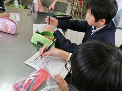 食べ終わって、ワークシートを記入。後片付けも、バッチリなようです。