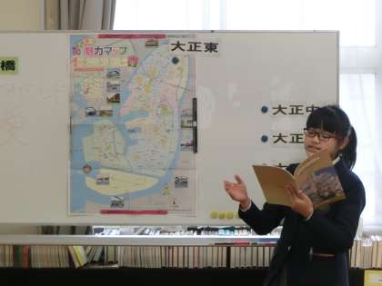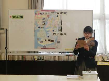 生徒会のプレゼンでは、大正区4中学校の校名の謎、「大正愛ランド」についての発表がありました。