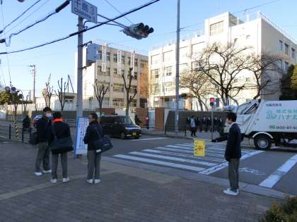 しかし、生徒会執行部・2年学級代表たちは、頑張ってあいさつ運動・交通安全指導に力を入れています。