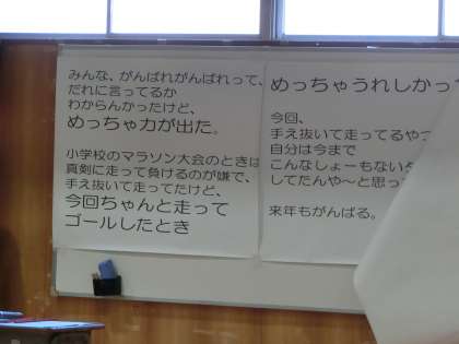 本日のマラソン大会に向けて、卒業生の作文が紹介されました。