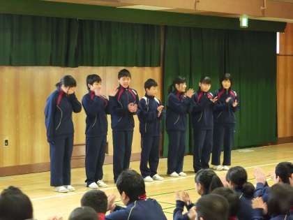 リーダーたちの司会進行のもと、大きな声出しが行われました。
