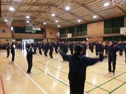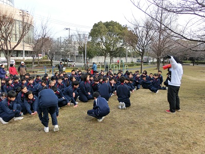 式を終え、準備体操の後、体育館から北村南公園に移動しました。