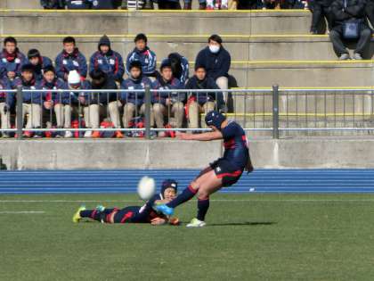 開始直後、ペナルティからキックを決められ、先制を許しますが、すぐさまトライを決め逆転しました。