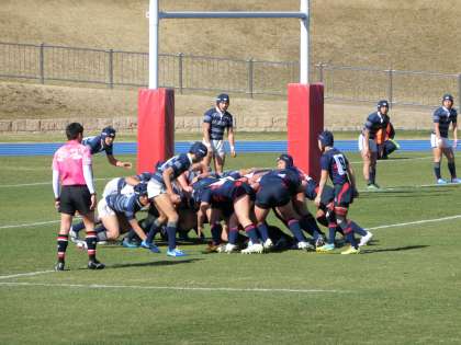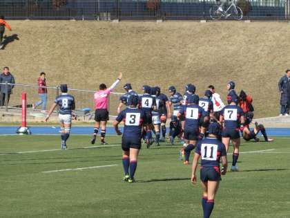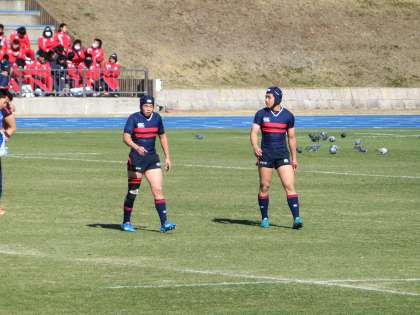 卒業生はスタメン。縦横無尽に走り、果敢なタックルも。