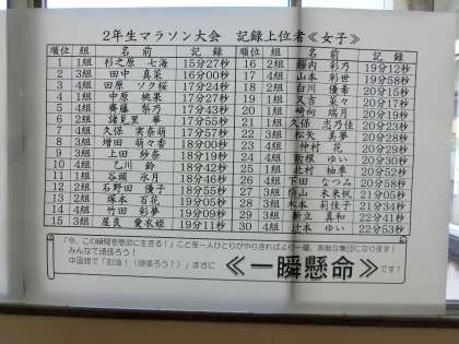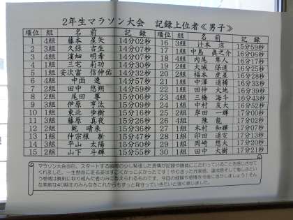 2年 マラソン大会の結果