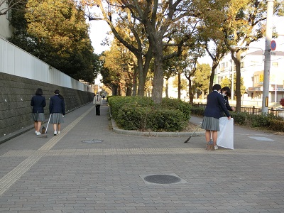 今朝は、吹奏楽部が落葉の掃除をしてくれました。