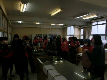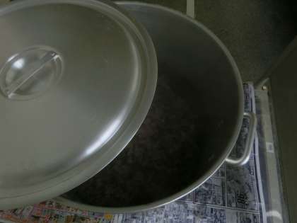 調理室では、早くも、豚肉や野菜の煮込みが終了したようです。