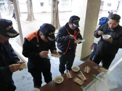 生徒たちの、この笑顔。炊き出し効果は、抜群でした。