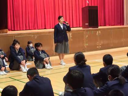 皆さん、おはようございます。久しぶりの体育館での集会です。