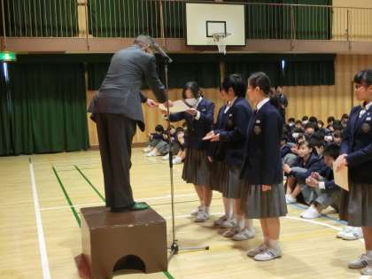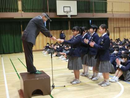 吹奏楽部、演劇部の表彰を行いました。
