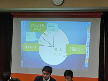 自分たちで意見を考え、相手の主張も聞き、主体的に考えることが学びとなっています。