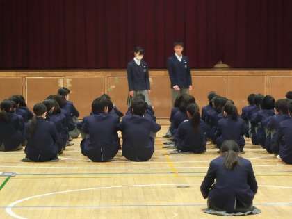 今朝は、学級代表から、学年末テストに向けて、3年に進級するにあたって、決意が述べられました。