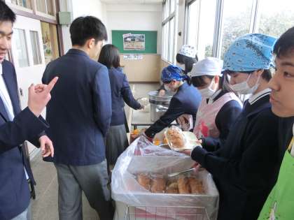 3年の配膳風景。