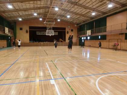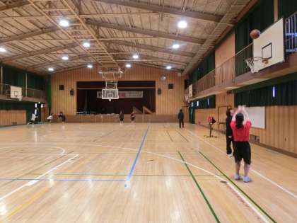 体育館では女子バスケット部が練習しています。