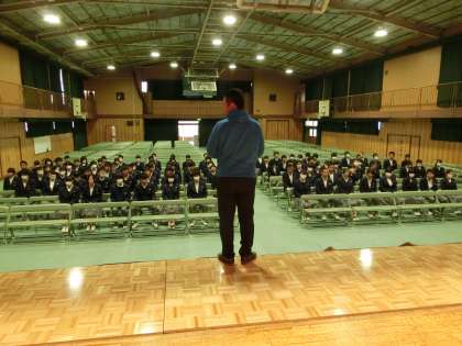 仮設営が仕上がった体育館で、卒業式の練習が行われました。