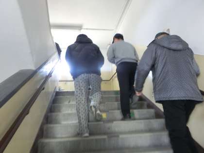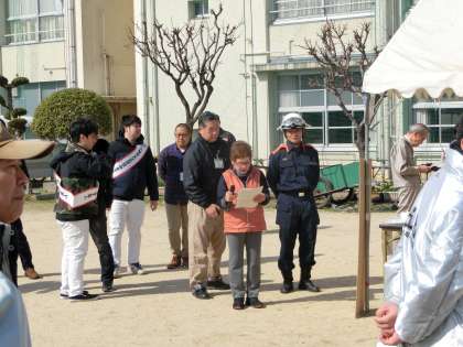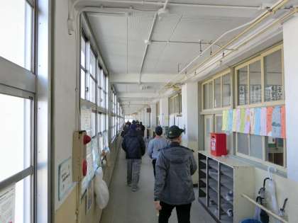 ごあいさつのあと、津波を想定し、校舎3階に避難します。