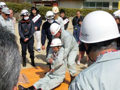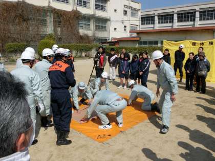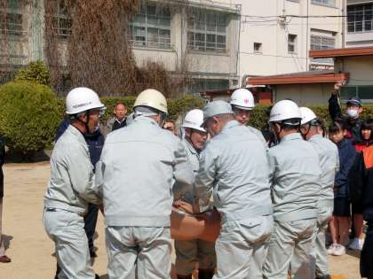 本校の防災訓練でもご指導いただいた搬送訓練。