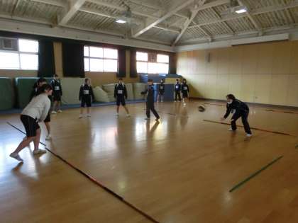 女子は格技室で、ドッヂボールです。