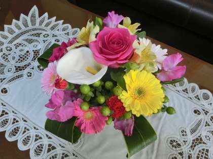 舞台上の豪華な花が、あちこちに生けられました。