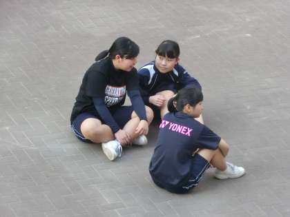 卒業式を盛り立て、昼からの活動を終えた2年バドミントン部の生徒たち。