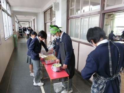 今日は、「鮭のクリームスパゲティ」「キャベツとコーンのサラダ」!