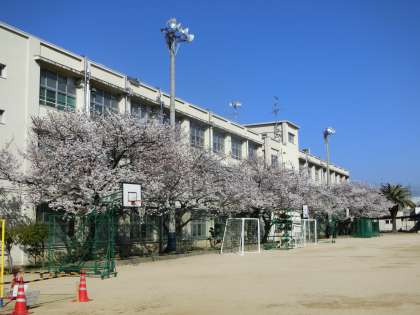 学校に似合う桜たち