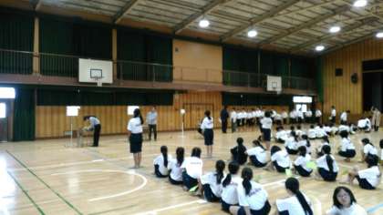 本日は発育測定・視力・聴力検査です。体育館で身長、体重、視力検査をカウンセリングルームで聴力検査を行っています。