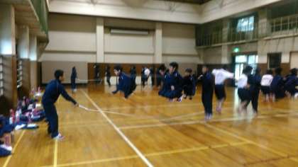 ガイダンス9より 2組「校歌練習」、4組「大なわとび練習」の様子です。