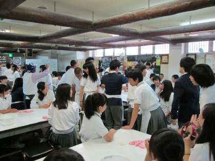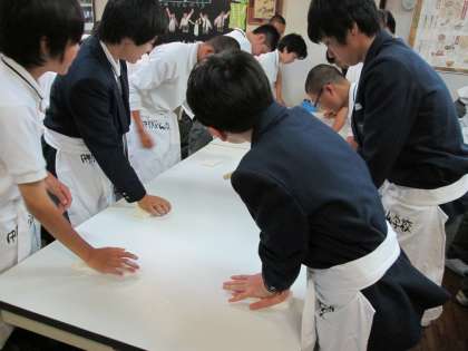 最後は、ヒット曲のリズムにのって、うどん打ちでした!
