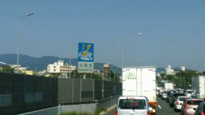 兵庫県川西市に入りました。渋滞は続きノロノロ状態です。