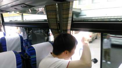 バスへ乗車し、民泊の方々のお見送りの中、ラフティングへ出発です。