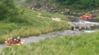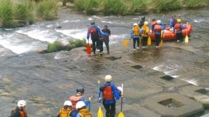 浅瀬はボートを降りて移動です。あと少しでゴール地点です。