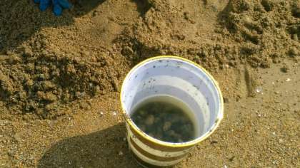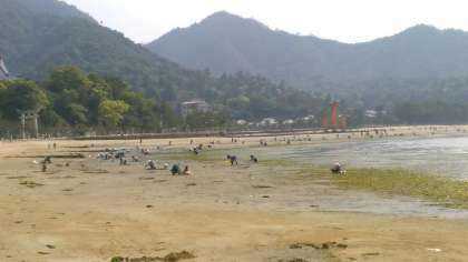 浜辺では、地元の方が潮干狩りでアサリをとっていました。