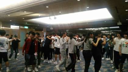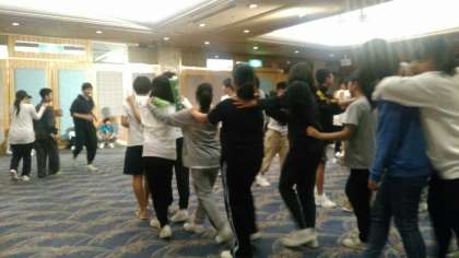 最後のゲームは、じゃんけんに勝った人の後ろにつながっていくゲームです。徐々に長い列が出来上がっていきました。