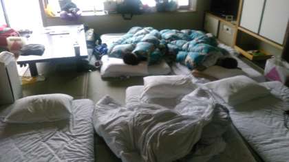 おはようございます。起床時間です。なかなか熟睡していて起きれない生徒もいます。