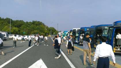 三木サービスエリアに着きました。最後のトイレ休憩です。ここを出たら学校まで休憩なしで行きます。