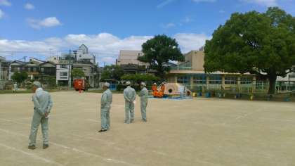 本日20日(日)、泉尾東地域の防災訓練が泉尾東小学校で実施されます。今は10時開始に向けて準備中です。本校生徒たちもボランティアで参加しています。