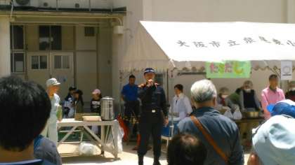 閉会式です。吉田区長からは、震災時における地域力の大切さについてお話をいただきました。大正消防署長は講評の中で、備えと訓練の大切さについてお話がありました。最後に野村連合町会のご挨拶で防災訓練は閉会しました。