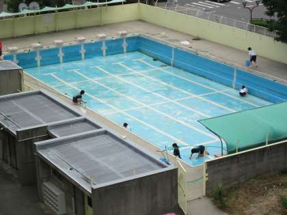 夏の体育はプールです。そのプール開きに備えて、バスケット部・バレー部など運動部員を中心に、プール清掃大作戦が行われました。8か月以上もの間、ほったらかしになっていたプールですから、その汚れはひどく、とても大変でしたが、部員たちがボランティアで頑張ってくれました。ありがたいですね。感謝感謝!! きれいになったプールでの授業、楽しみです。