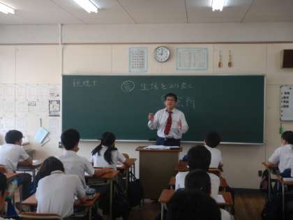本日、3年生を対象に税理士の方をゲストティーチャーとして招き、租税教室を行いました。各学級ごとに1限目から4限目まで、税の仕組みについて具体例をあげながら分かりやすく授業をしていただきました。
