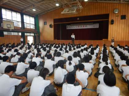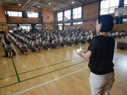 本日は1学期の終業式でした。教務主任の先生の司会進行で式は始まりました。初めに校長先生から1学期を振り返っての話や夏休みの学習計画のお話があり、生徒指導主事の先生から夏休みの過ごし方のお話がありました。終業式後は学級活動を行いました。