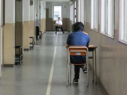 教科担当の先生方は、各教室を周って、質問に答えたり、アドバイスを行ないますが、テスト監督以外の先生も廊下に待機しています。