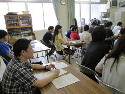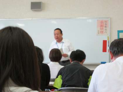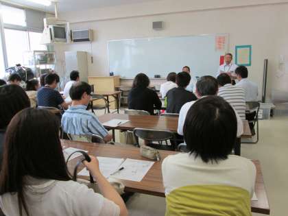 泉尾東会場では、全体会で中原校長からご挨拶のあと、主旨説明があり、各教科ごとに分かれました。
