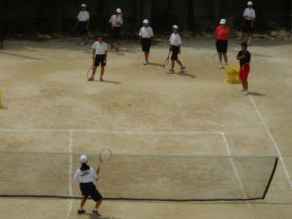 公式戦勝利を目指し練習中(ソフトテニス部)