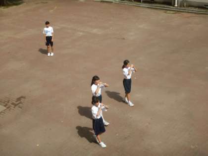 中庭では吹奏楽部が体育大会のマーチングの動きの練習をしています。本番が楽しみです。