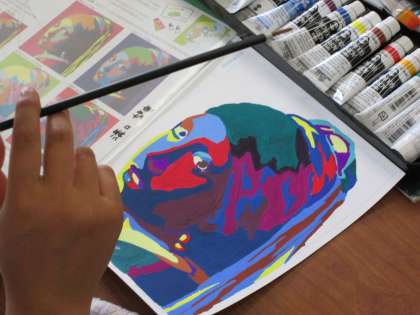 色使いの学習でしょうが、手本を見ながら、丁寧に色を塗っていきます。細かく、根気が必要ですが・・・。上手な生徒がたくさんいました。
