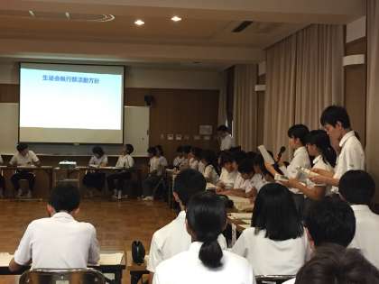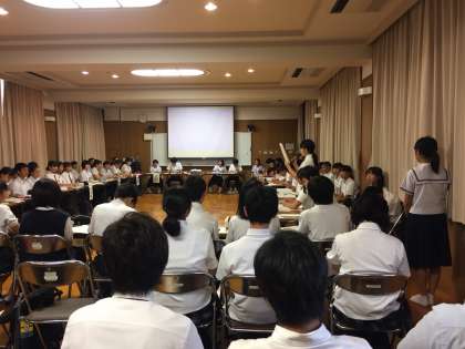 特別活動の領域では、上町中学校を会場に「生徒一人ひとりが主体的に生きる特別活動の創造」をテーマに、生徒会交流を行いました。各校の実践報告や質疑応答などを通して生徒会活動の活性化を図るとともに、教員間の情報交換により指導方法の研究を図りました。