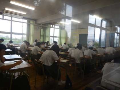 台風被害の関係で本校では本日11日に3年チャレンジテストを実施しました。