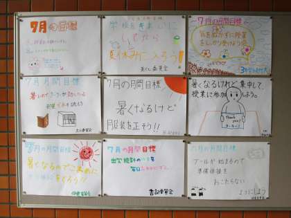 生徒会の各種委員会から、7月の目標がポスター掲示されました。