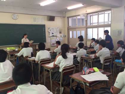毎年この時期にオーストラリアから一時帰国するミアさんが今年も体験入学をしています。今日は国語の授業で、四字熟語の発表です。ミアさんは「以心伝心」について調べて、しっかり発表しました。ミアさんはもう中学3年生、今回の体験入学が本校では最後となります。